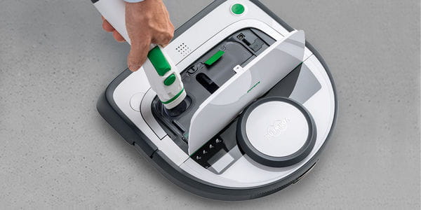 The Kobold VR200 has a special function that allows it to return to its docking station when its battery runs out.